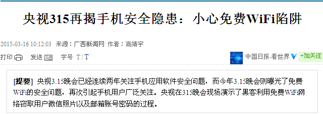 如今我们越来越离不开WiFi了,去餐厅、去咖啡厅,首先来一句“你们这儿有WiFi吗?密码是什么?”。但最近屡屡看见有新闻报道:女孩在麦当劳连WiFi上网被骗2000元;隔壁女神的路由器被破解,微信、QQ账号遭泄露等。更令人惊出冷汗的是央视在3.15晚会现场演示了黑客利用免费WiFi网络窃取用户邮箱账号和密码过程的报道,一旦邮箱账号和密码被窃取之后,黑客还会窃取用户更多隐私信息。