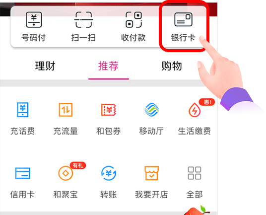 和包支付客户首次绑定银行卡,即送10元和包券,可在联盟商家抵现使用