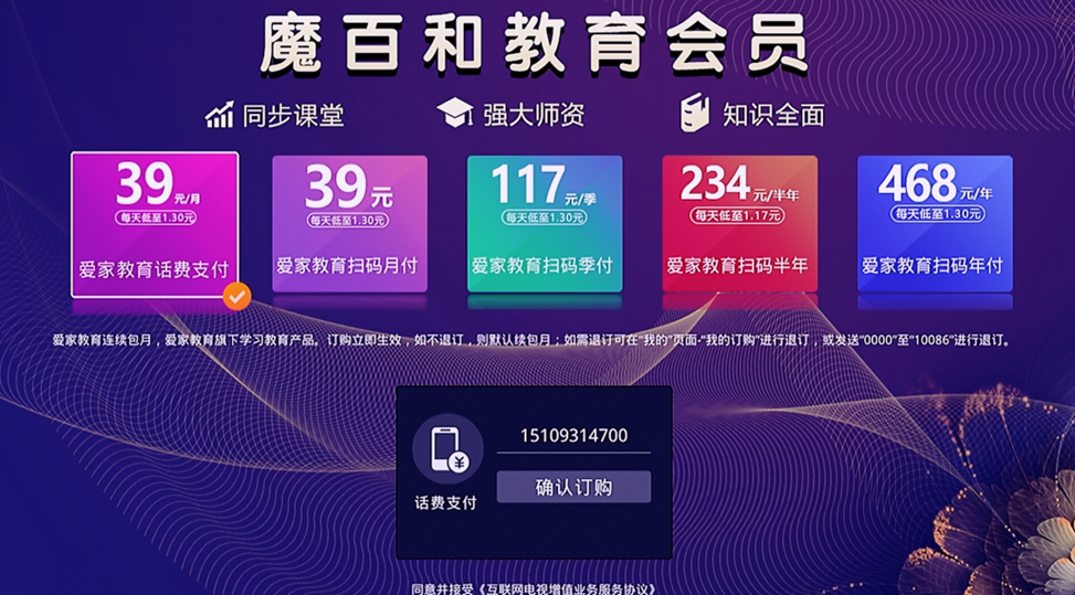 以教育栏目订购为例,阐述VIP服务订购流程: